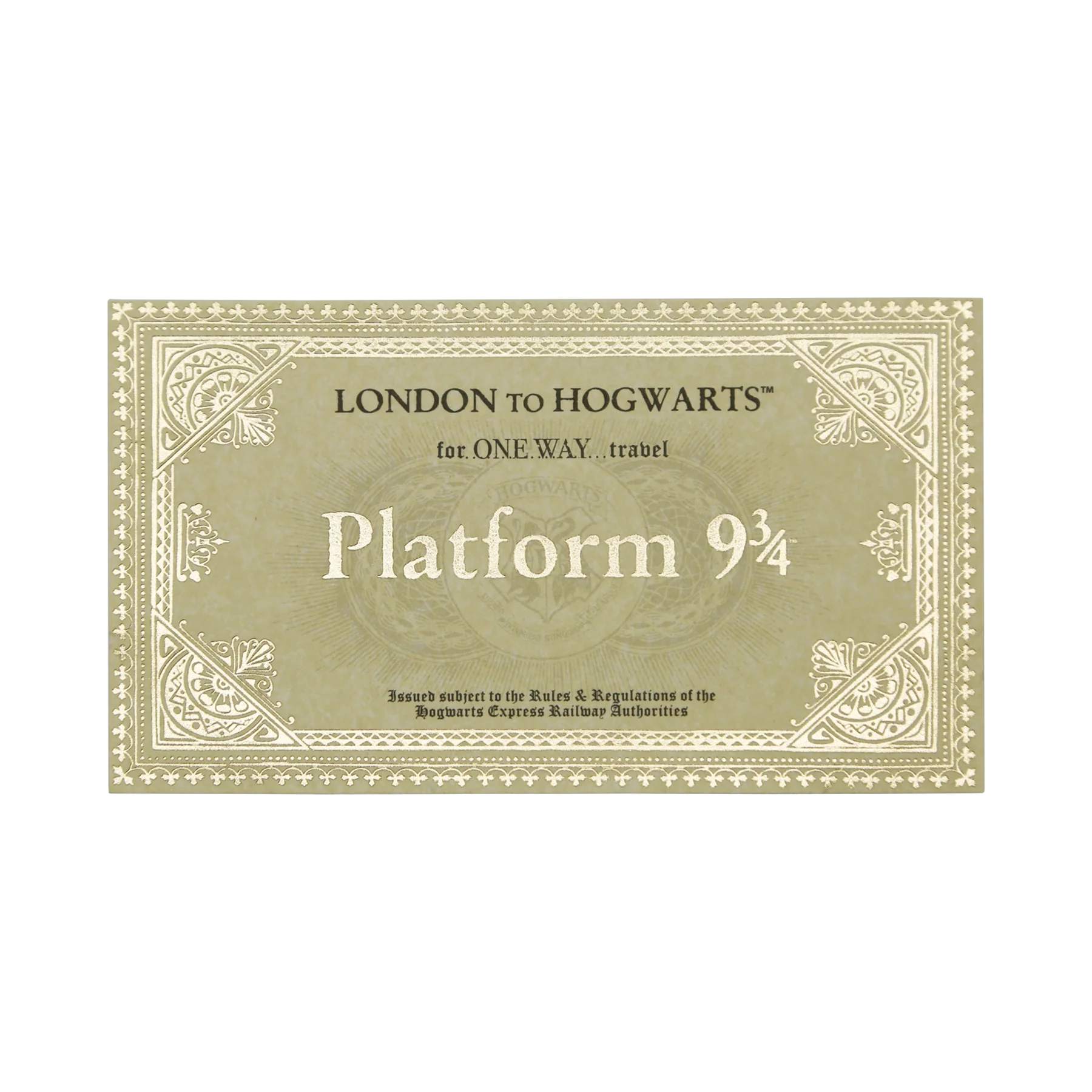 Take home your very own replica of the iconic Hogwarts Express Souvenir Ticket in this collectable display folder. The Hogwarts Express ticket is embellished with gold foil, and is based on the original artwork by MinaLima, the graphic duo, who designed all the original graphic elements for the Harry Potter films.