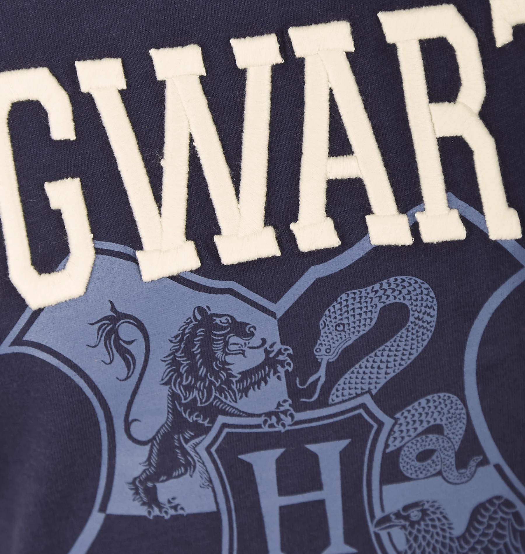 Step into the magic of Hogwarts with this exclusive Kids Hogwarts Varsity T-Shirt! This deep navy tee, made from 100% cotton, is perfect for any young wizard or witch. Featuring a lighter blue print of the iconic Hogwarts crest front and centre, it proudly showcases the school's legendary spirit. The name 'Hogwarts' is boldly written in a varsity-style font across the chest, making it clear which magical school they belong to.